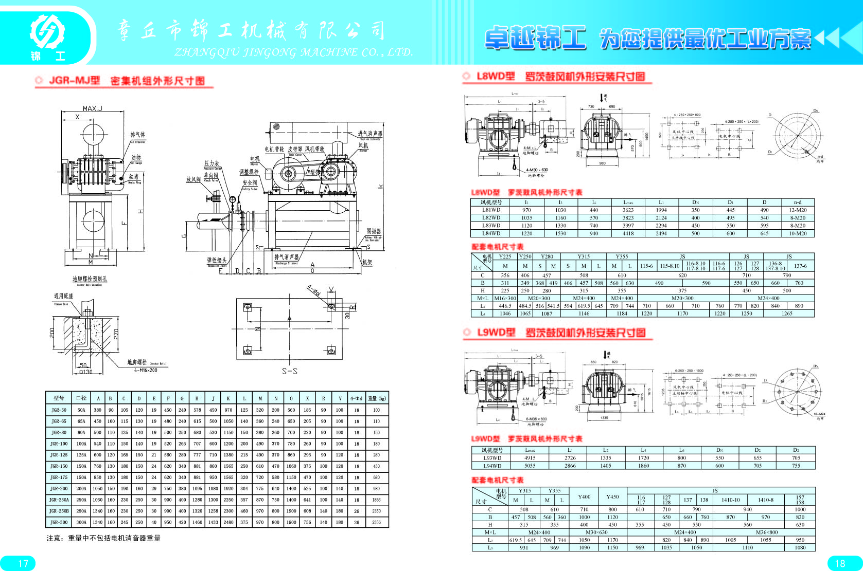 以上為羅茨風機外形尺寸圖,與國內各大品牌通用,CAD文件如有需要,可致電山東錦工有限公司索取。